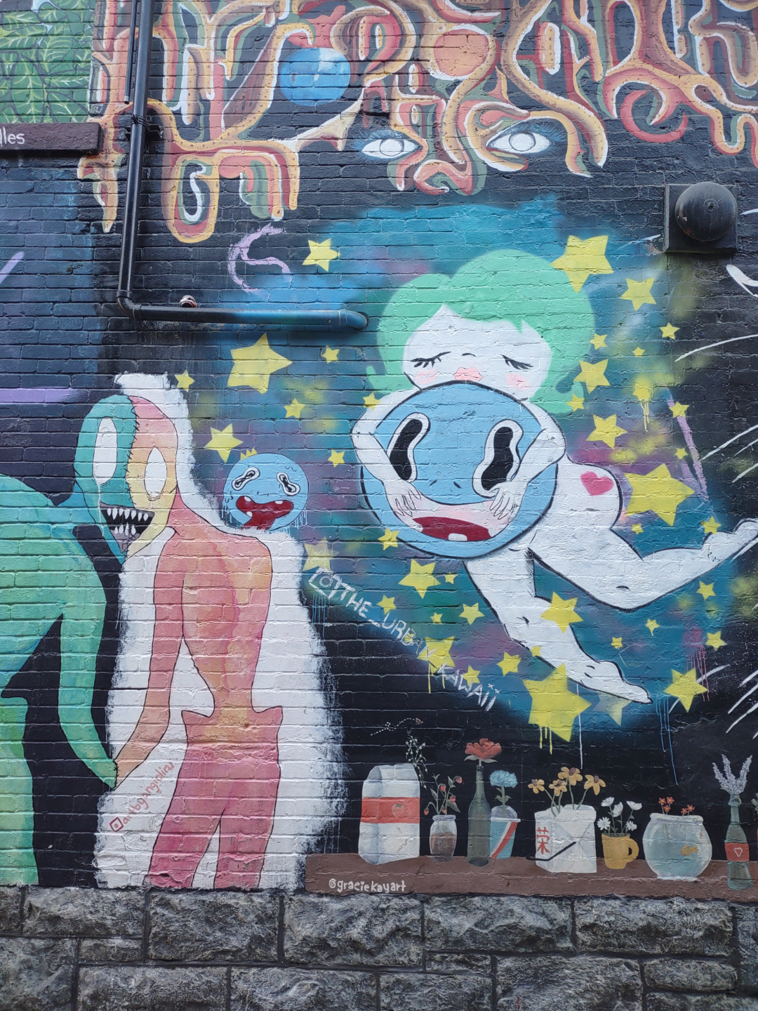 Mural on the Wall by Sidewalk