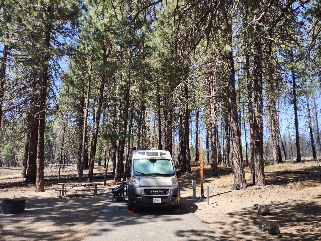 We stayed at Collier State Park Campground. There was a forest fire a few years back so the trees were sparse