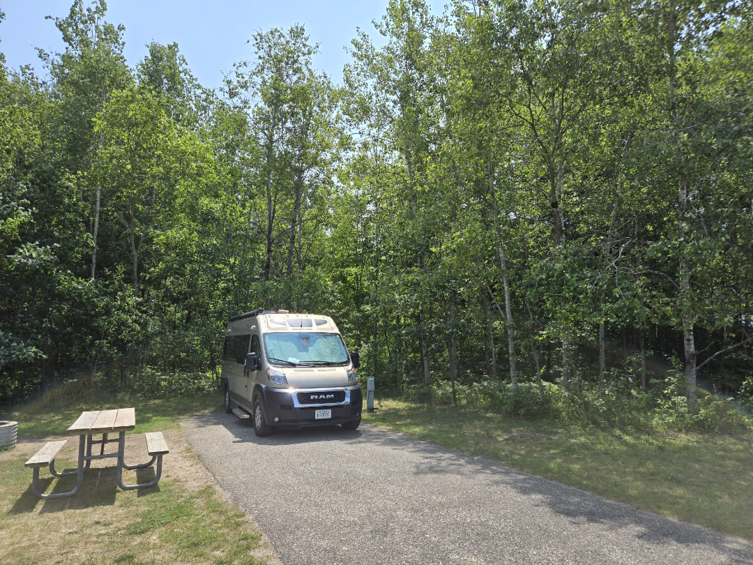 We Drive Only 20 Miles to Grayling Michigan to stay in Hartwick Pines Campground. Still waiting for Niki’s Covid to be Over.